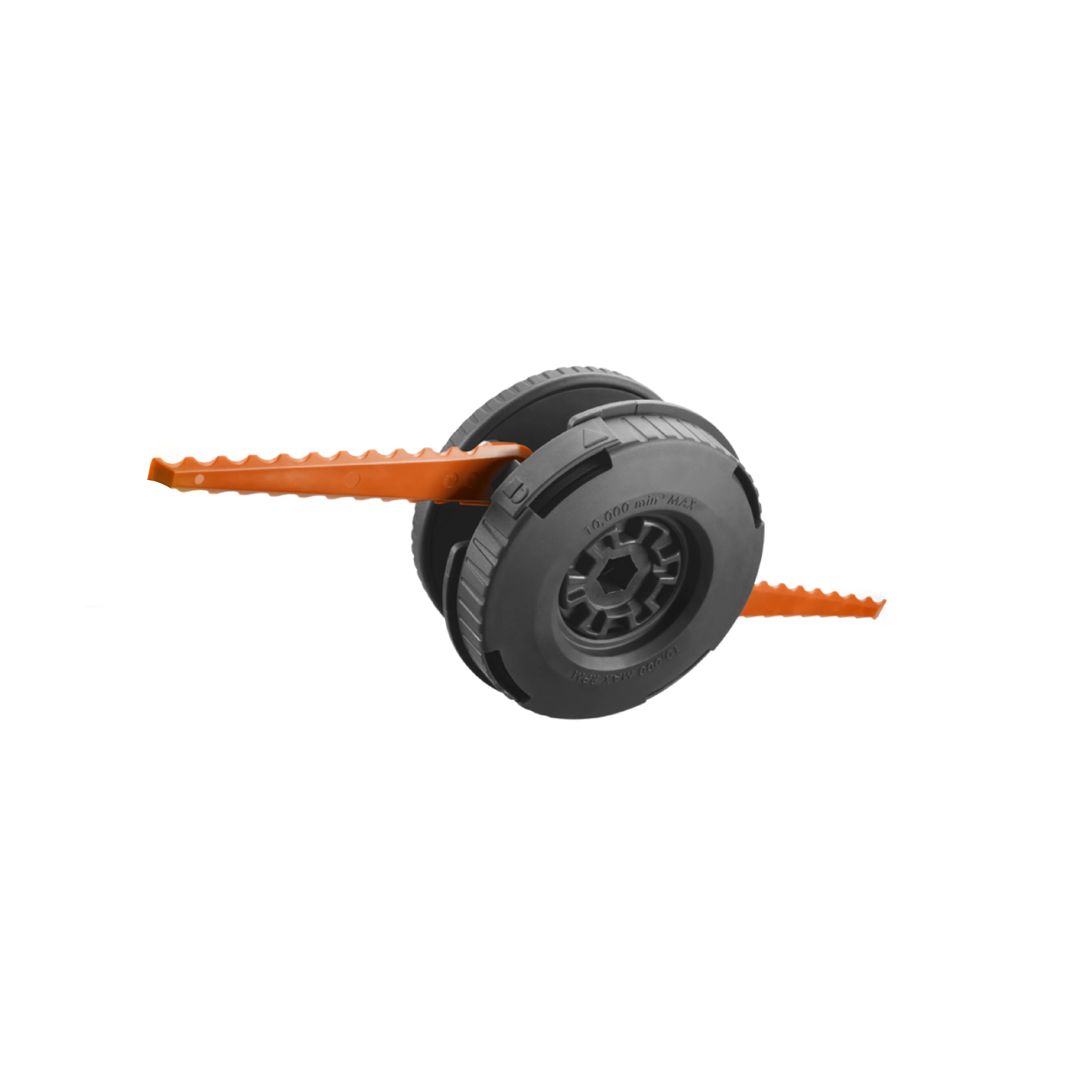- Bladed head with heavy-duty serrated blades, ideal for heavy weeds and thick grass